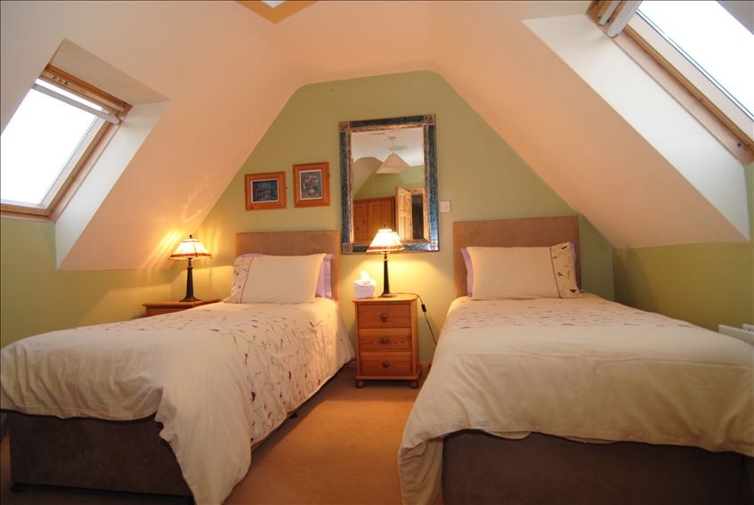 There are 2 bedrooms on the first floor. A large double bedroom with en-suite and a twin room with 2 single beds.
